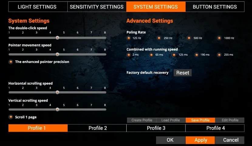 Software-ul mouse-ului a fost dezvoltat pentru a vă oferi oportunități nelimitate de setări personale în jocul de orice gen. Personalizarea completă a mouse-ului vă permite să creați un profil de jucător pentru a salva și transfera setările personale, atribui macrocomenzi, schimba atribuirea butoanelor, DPI. Victoria este a ta!